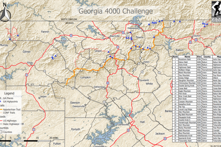 The Georgia 4000 Challenge Rules are simple and straightforward. Individuals tackle the Georgia 4000 Challenge at their own pace, select their own routes and record their own progress. All of the peaks can be reached on day trips.