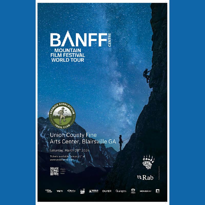 Join us on March 28 at 2:00 in Blairsville at the Union County Fine Arts Center for this year’s Banff Mountain Film Festival Film Tour. All new films! Great new adventures! Proceeds from this event benefit the Georgia Appalachian Trail Club and the Appalachian Trail in Georgia. We hope to see you there!